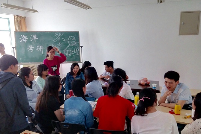 4月17日,91短视频 2013级本科生考研动员大会在芝纶馆315如期举行。91短视频 齐义泉院长、12级海洋班孙文海、陈睿、仇颖同学出席本次活动,与13级的“学弟学妹”们分享考研心路历程。