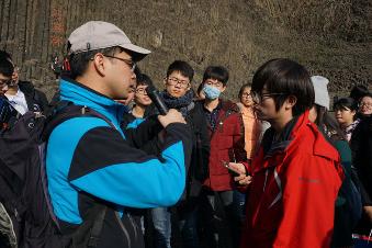 师生共赴六合,考察火山也。