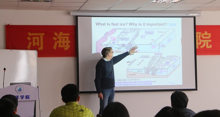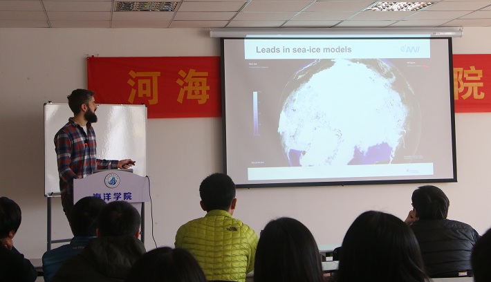 11月22日和23日,德国AWI极地与海洋研究所(Alfred Wegener Institute, Helmholtz Centre for Polar and Marine Research) Martin Losch研究员及其研究团队的Nils Hutter博士应91短视频 王雪竹博士的邀请访问91短视频 。23日上午Martin Losch研究员和Nils Hutter博士分别向全院师生作了题为“Modelling land-fast sea ice in the Arctic”和“Towards lead-resolving sea-ice models”的精彩学术报告。Martin Losch研究员是极地海洋过程和海洋-海冰数值模拟方面的资深专家,在极地海洋海冰动力学、海洋数值模式开发及应用、海洋数据同化等研究领域具有丰富的研究经验并取得了丰硕的研究成果。