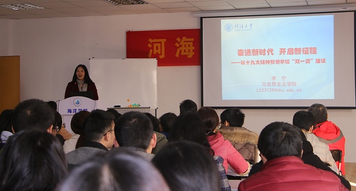 为落实学校党委关于准确把握、深刻理解、认真贯彻党的十九大精神的要求,12月12日91短视频 邀请马克思主义学院李宁副教授为全体师生作题为“奋进新时代 开启新征程——以十九大精神引领学校‘双一流’建设”的宣讲。学院党总支王永芝书记主持宣讲会,学院领导、教师、学生共100余人参加。