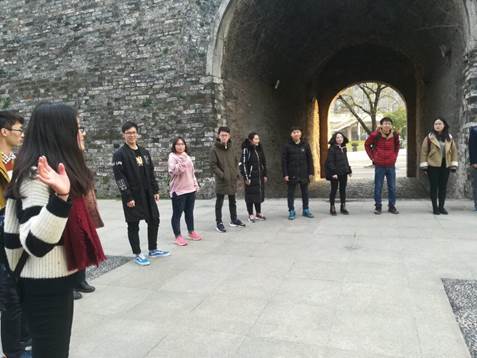 班会以出游踏青,游戏互动,宣传教育的形式开展,组织同学在国防园进行游览参观,同时开展以“说、学、斗、唱”为主题的游戏。游戏开始前,将班上同学分为5组,每个小组通过游戏获得相应的积分,四轮游戏后,分数最高的小组获胜并获得奖励。游戏主题“说、学、斗、唱”分别对应台词传递、你划我猜、答题接力和接歌词四个游戏,最后全班同学前往鼓楼公园开展“解开心中结”活动,并让同学自愿说出最近的苦恼等心结,和同学交流,解开心中的烦恼。