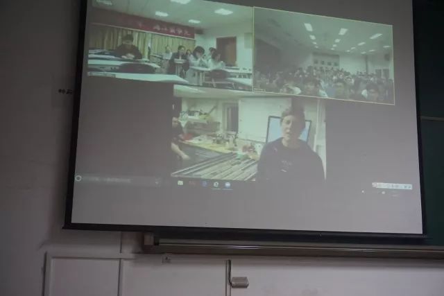 期间,王毛毛博士为大家一一讲解了科考船的结构,并将生活区和钻井平台进行了细微的介绍,吸引了同学们的眼球,开阔了同学们的视野,并促进他们的成才梦进一步的生根发芽,极大的发展了海洋人的海洋梦。之后,王毛毛博士连同和他一起受邀的科学家同同学们打招呼,与大家进行友好的交流。同学们在交流过程中,仿佛沉醉在浩大的海洋中,目不转睛的盯住屏幕,思考着每一句话。最后,王毛毛博士介绍完,同学们积极向老师提出他们憧憬的大海中可能遇到的各种各样的问题,王毛毛博士笑着为他们一一解答。