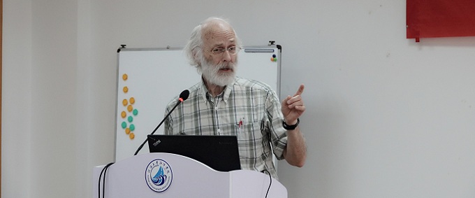 首先,William Perrie教授对如何获得高分辨率的合成孔径雷达图像进行了介绍,相比于光学传感器而言,他指出作为有源传感器的合成孔径雷达更具有海面观测上的优越性。其次,教授对合成孔径雷达的数据在海冰表面融池(melt pond)的监测应用作了进一步的介绍。William Perrie 教授还对波浪与海冰的相互作用,及其在提高海浪预报的作用上进行了详细介绍和讨论。最后,William Perrie 教授对太平洋-北极偶极模态(Pacific-Arctic Dipole)和 用NEMO海洋模式模拟北极海洋环流方面做了详细的介绍。