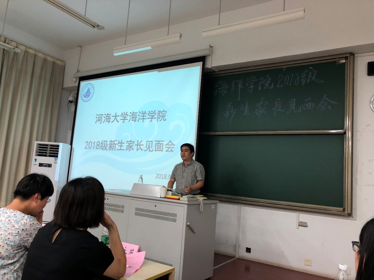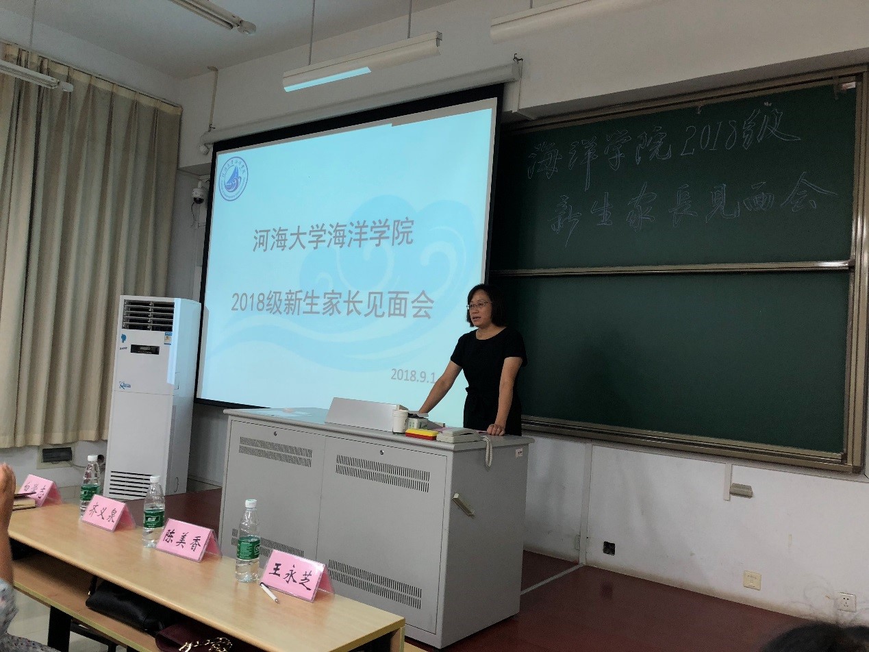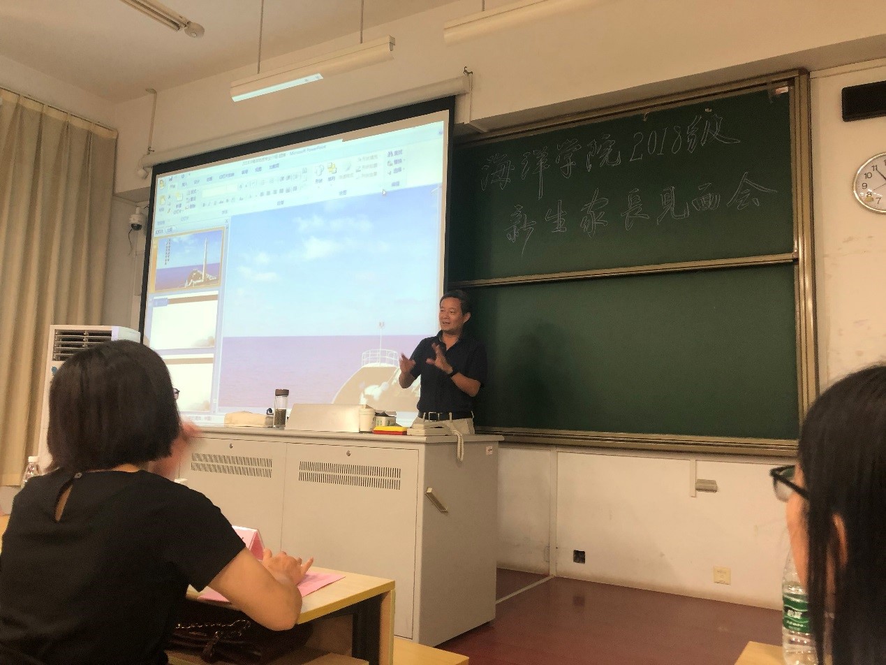 9月1日,91短视频 举办2018级新生家长见面会。学院院长齐义泉教授、副院长白学志教授;物理海洋系副主任陈美香副教授、海洋地质系副主任颉炜副教授、海洋生物系副主任吴亚平副教授、本科生辅导员、2018级各班导师及新生家长参加了此次会议。会议由学院党总支王永芝书记主持。