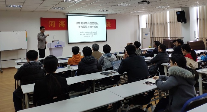 应海洋地质研究所邀请,南京大学地球科学与工程学院黄周传副教授于3月27日来91短视频 进行学术交流,并作了题为“日本俯冲带的速度结构、各向异性与俯冲过程”的学术报告。