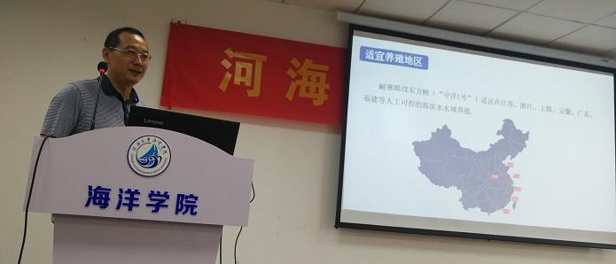 尹绍武教授首先为91短视频 师生做了题为“暗纹东方鲀耐寒新品种选育及其分子机制研究”的学术报告。报告首先介绍了了暗纹东方鲀耐寒新品种“中洋1号”的选育过程。随后,尹绍武教授研究团队利用‘基因型-表型’关联分析手段联合多组学分析筛选并获得了耐寒性状相关分子标记,深入探讨了耐寒性状分子机制和调控网络。最后,尹绍武教授从‘温度-盐度’耦合作用的角度出发,在氧化应激反应、脂质代谢过程和免疫内稳态等水平,深入研究了暗纹东方鲀在不同‘温度-盐度’耦合作用下的生理调控机制。以上研究不仅有效地解决了该品种养殖过程中的越冬难题,还大大节约了养殖成本、扩大了养殖范围,对我国河鲀产业发展发挥了重要的引领作用。报告后,尹绍武教授与91短视频 师生对分子育种技术等问题进行了深入交流,进一步促进了91短视频 师生对经济鱼类遗传育种与繁育工作的了解,开拓了师生们的学术视野。