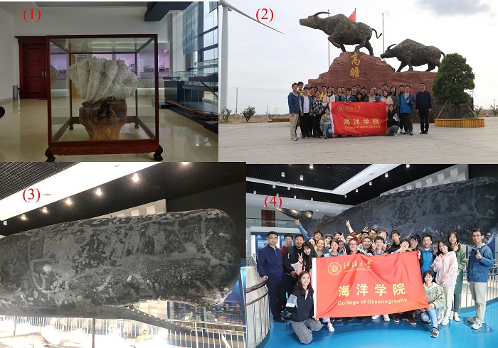 1)海洋科学教学实习基地揭牌2、3)参观海洋生物科普馆