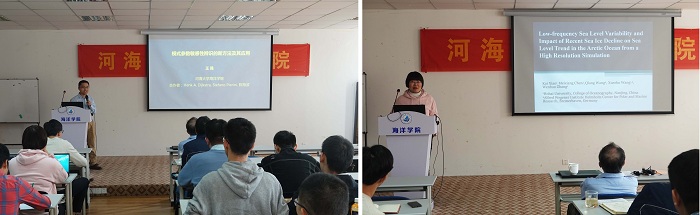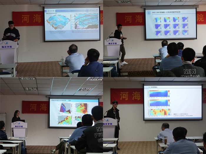 在会上,91短视频 师生分别做了题为 “模式参数敏感性辨识的新方法及其应用”(王强教授)、“北冰洋海平面年代际变化特征及近期海冰融化对北冰洋海平面趋势的影响”(陈美香博士)、“关于威德尔海环流区南极底层水的一些思考”(陶怡轩)、“西太平洋半年信号动力机制研究进展”(杨成成)、“孟加拉湾次中尺度过程的季节变化及其机制研究”(李兰满)、“Salinity stratification in the Tropical Pacific Ocean”(段玮)、“南大洋海底压强多尺度变化特征及其动力机制分析”(熊小琴)、“南大西洋水体涩度分析”(聂旺琛)、“威德尔海域水团特征分析”(张关强)的报告。黄瑞新教授对每个报告进行现场点评和指导,现场讨论气氛热烈。最后,本次研讨会在全场师生学者的热烈掌声中圆满落幕。(供稿:殷梦婷;审稿:程旭华)
