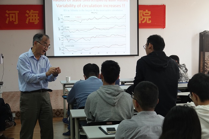 2019年11月5日,91短视频 召开了“海洋多尺度动力过程研讨会”。来自美国伍兹霍尔海洋研究所黄瑞新教授和91短视频 的50多名师生参加了本次研讨会。黄瑞新教授做了题为 “Density-Spicity coordinates: applications to water mass analysis/climate study” 的学术报告。报告中,黄瑞新教授介绍了海洋涩度的相关研究,提出了一种解决密度和涩度曲线不正交问题的方法,并指出了涩度在水团分析、海洋环流、海洋混合和气候变化等研究领域的应用前景。