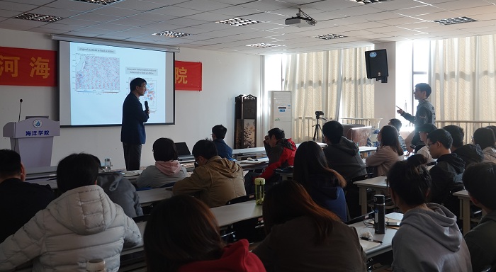 2019年11月22日,应齐义泉院长的邀请,美国夏威夷大学裘波教授(Dr. Bo Qiu)莅临91短视频 并做题为“Upper Ocean Circulation Reconstruction-Dynamic Framework and Observational Relevance”的学术报告。报告共分为两部分,第一部分主要介绍了中尺度的重要性并用swot卫星数据进行相关研究;第二部分是探讨次中尺度研究过程中仍存在的问题和局限性。除学术报告外,裘波教授还与91短视频 师生进行了一对一的沟通与交流,特别是对青年教师和研究生的研究工作做了细致的指导,针对科研工作中遇到的具体问题,给与了中肯且切实可行的意见与建议。