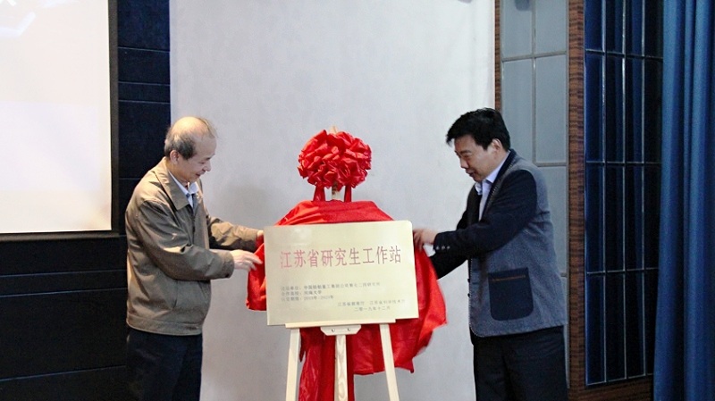 华祖林院长与王建总工程师为“江苏省研究生工作站”揭牌