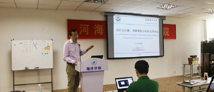 2020年5月22日,上海海洋大学吕为群教授为91短视频 师生作了题为“为什么应激:勇敢和胆小鱼儿的命运”的精彩学术报告。本次报告采用“线上+线下”直播同时进行的方式,100余人参加了此次学术报告。