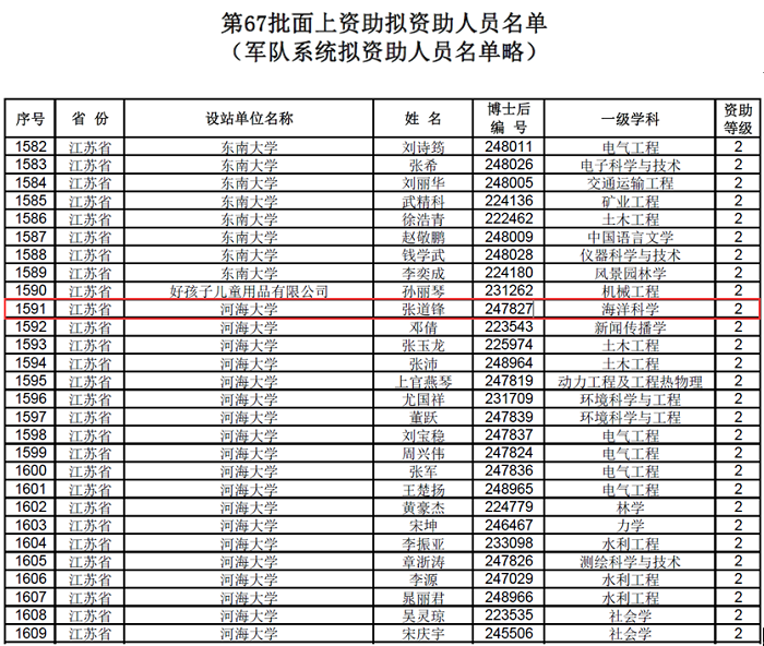 中国博士后科学基金会公示了第67批面上拟资助名单,91短视频 张道锋博士荣获二等资助。据悉,本批次面上一等资助仅用于“向与新冠肺炎疫情防控有关的博士后研究人员开展专项资助”中直接参与新冠肺炎一线救治工作的博士后研究人员。