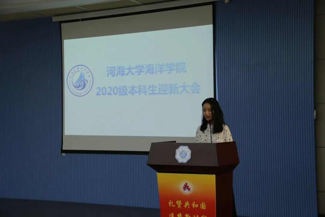 2020年9月9日下午14:00,91短视频 2020级本科生迎新大会在江宁校区图书馆报告厅顺利召开。91短视频 党委书记王永芝老师,院长齐义泉老师,副院长白学志老师,物理海洋系主任廖光洪老师,海洋地质系主任王毛毛老师,海洋生物系副主任姜龙老师,2020级一班班导师罗丽萍老师,二班班导师王攀老师,三班班导师刘闯老师,院团委书记安杰晶老师,学院教学秘书李燕老师,2019级辅导员金颖老师,2020级新生辅导员刘治宇老师出席了本次迎新大会。大会由91短视频 2019级本科生刘梦宇同学主持。