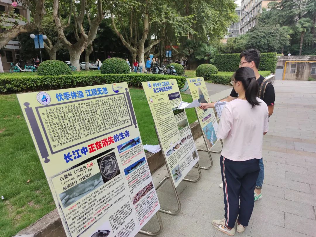 近日,“伏季休渔、江豚无恙”宣传活动在西康路校区一食堂前顺利举办。本次活动中91短视频 志愿者通过发放传单,讲解以及展板展示的形式,向学校师生科普宣传江豚和保护长江流域生态环境的重要意义。