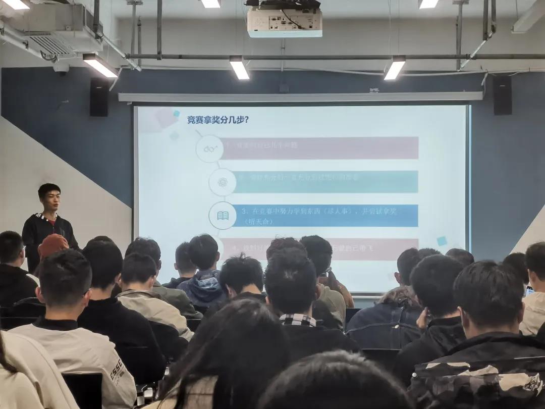 最后压轴的李云峰同学以竞赛为切入点,把大学生活讲的深入浅出,“竞赛以兴趣为先导,以努力为过程,以取胜为结果”。讲解到此结束,台下掌声雷动,大有余音绕梁,三日不绝之意味。