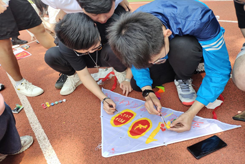 图三:小组绘制“建党100周年”主题风筝                         图四:小组对绘制的风筝进行展示