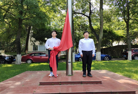 早上9:00,支部全体党员在工程馆门口进行了庄严的升旗仪式。面向鲜艳的五星红旗,党支部书记刘治宇同志带领大家重温入党誓词,激励大家牢记入党初心,继承革命传统,传承红色基因,发挥青年党员优势,以实际行动投入到党和国家的建设中来。
