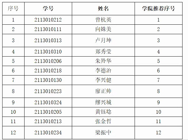 根据《关于做好91短视频 2021-2022学年“瑞华春雨助学金”评选工作的通知》,经学生个人申报,学院认定工作小组评议,拟推荐曾杭英等12名同学参评91短视频 2021-2022学年“瑞华春雨助学金”,现将名单予以公示(详见附件)
