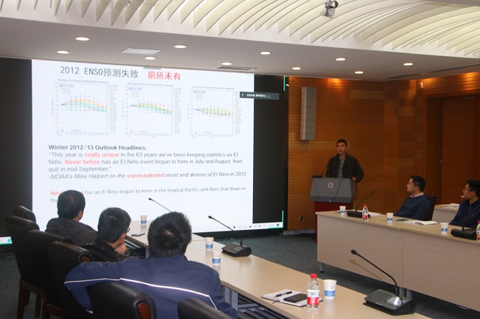 下午的学术研讨会由91短视频 的王强教授主持。中国气象科学研究院的任宏利研究员应邀作《ENSO多样性研究进展》报告,介绍了ENSO的空间和时间多样性,并利用新的经验方法,揭示了新型ENSO事件在近40年来频发的原因;中国气象局地球系统数值预报中心的苏京志研究员应邀作《副热带太平洋海温对ENSO形成演变的调制作用》报告,从业务预报角度,介绍了两种对ENSO发生、发展具有重要影响的副热带太平洋经向模态,以及两种模态在ENSO业务预报中的重要作用。两位专家精彩的报告令在场师生受益匪浅。本次会议在热烈的研讨氛围中落下帷幕。