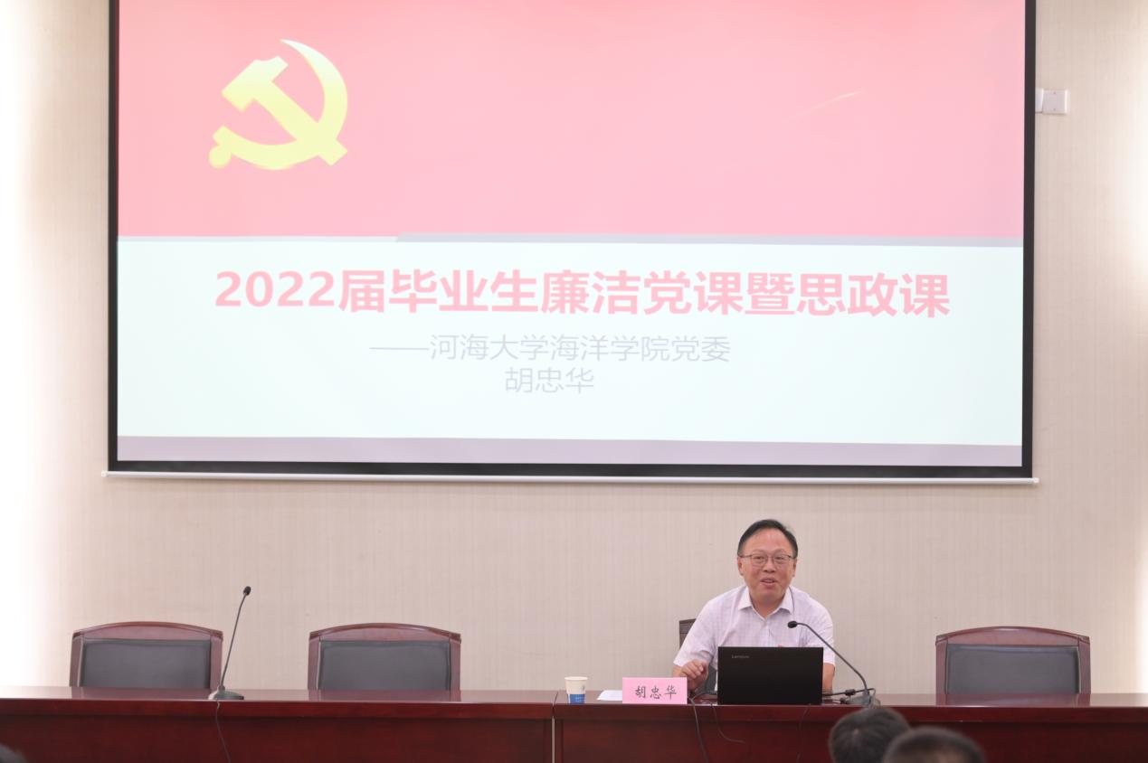 最后,吴昊寄语毕业生,希望全体毕业生在未来的学习工作中,继续弘扬优良作风,持续清廉本色,牢记校训精神,彰显河海气度、展现河海风采,并祝福全体同学前程似锦,未来可期。 本次活动以毕业季为契机,以思政课堂、倡议承诺的形式引导教育毕业生树牢道德根基,筑牢清廉防线,在今后的工作岗位中坚守河海本色,做好清廉表率,在未来的人生道路上走得更正、走得更远。