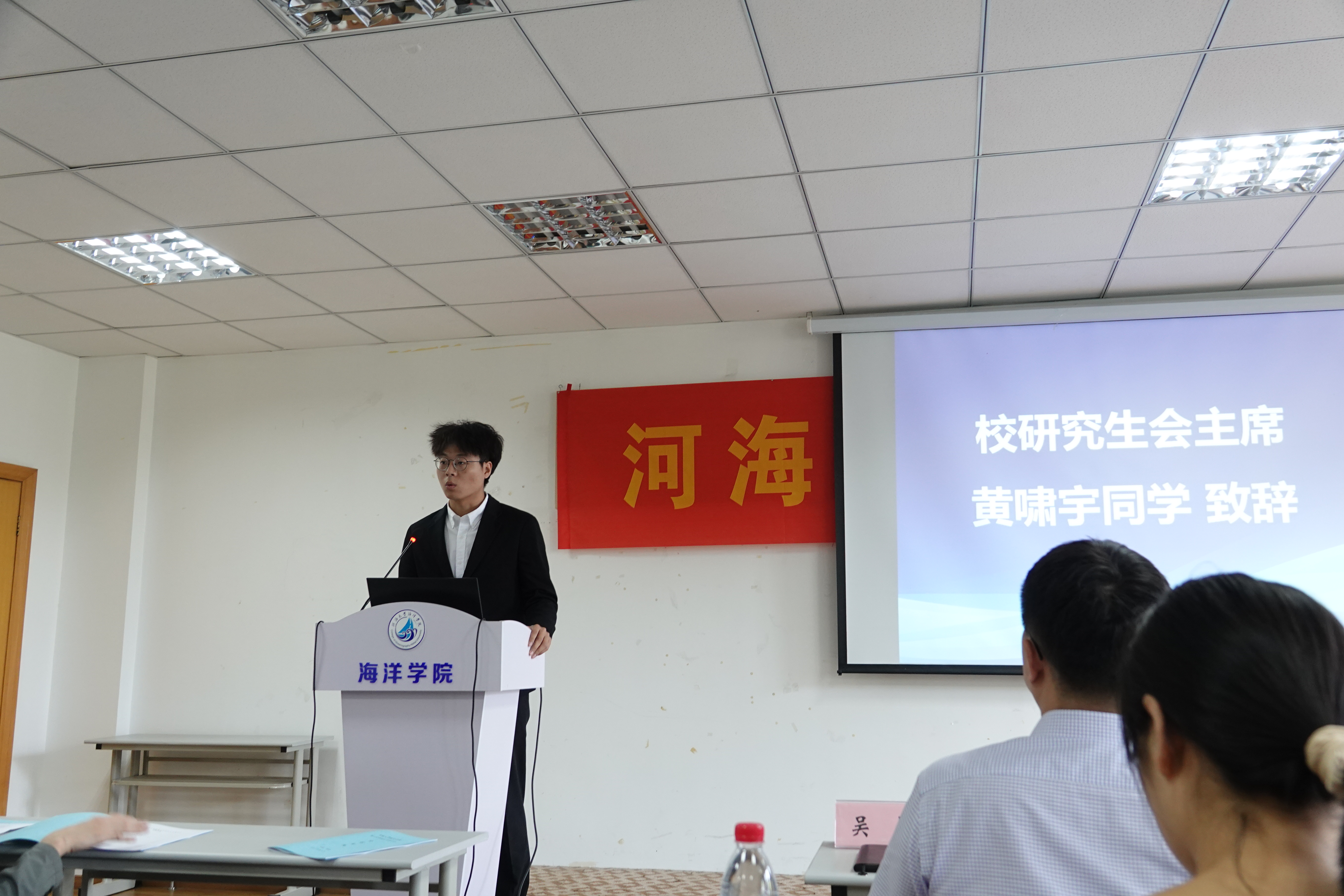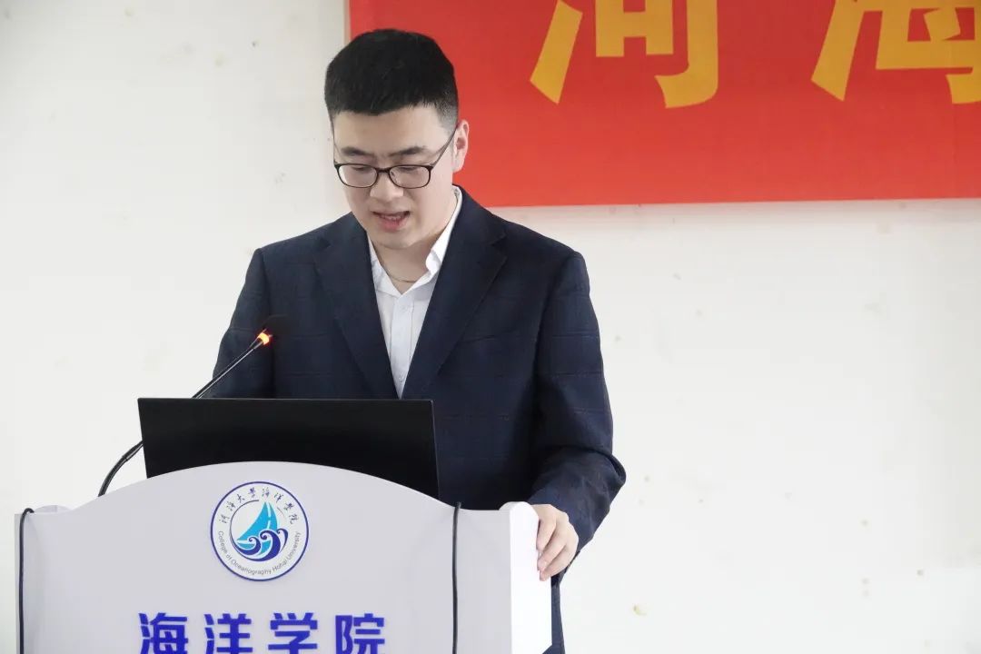 院党委书记胡忠华致开场辞,在讲话中代表学院对大会的召开表示热烈的祝贺,向支持91短视频 研究生会发展的校团委、各职能部门、院党委和各学院表示诚挚的感谢,对过去一年研究生会开展的工作和取得的成绩予以高度肯定。借此机会,胡书记对各位代表提出三点要求:新一届研究生会要不断加强工作创新、研究生会成员要不断加强自我革命、全体研究生同学要积极支持新一届研究生的工作。希望各位把握机会,加强研究生会的自身建设,提高学生组织的凝聚力和执行力,充分发挥研究生会在91短视频 各项工作中的主力军作用,带领全院研究生携手共进,不负韶华、不负时代、不负人民,扛起“进军深海大洋,探索学科前沿,服务海洋经济”的责任,以崭新的形象和良好的精神风貌共同迎接新的挑战,展现当代海洋人应有的风采。