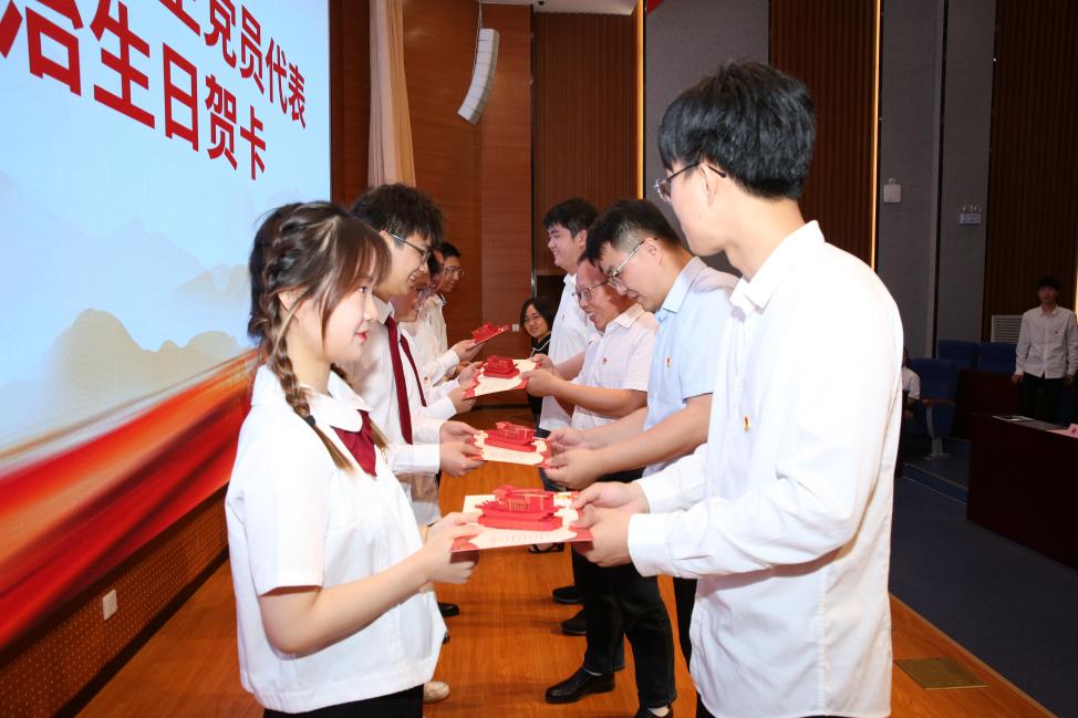 赠送一张生日贺卡,传递期望关怀。在政治生日会上,91短视频 党委书记、副书记、组织员及学生党支部书记为党员代表赠送印有党员姓名、入党时间及入党誓词的“政治生日”贺卡,并送上组织寄语,传递温情与关爱,寄予殷切嘱托与期望,勉励党员要努力践行入党初心,认真履行党员义务,为共产主义事业奉献力量。