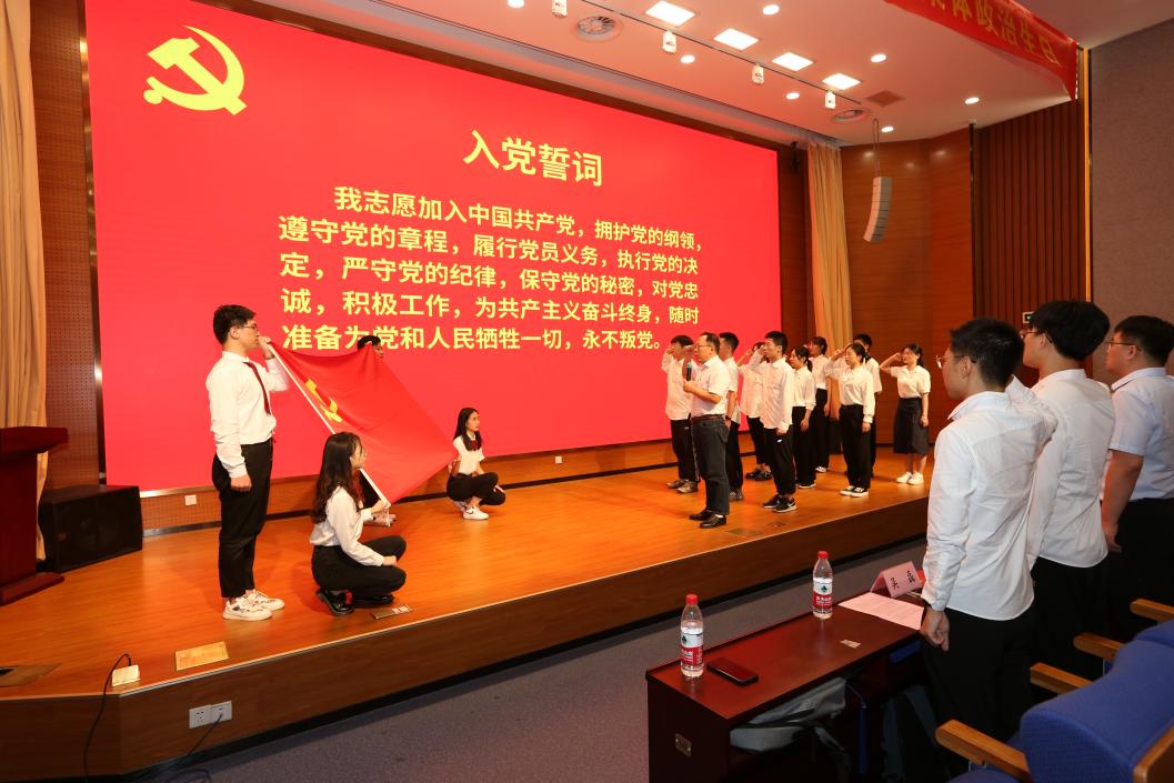 佩戴一枚党徽,赓续光荣使命。为鼓励新党员赓续优秀党员的光荣传统,会上举行“老党员为新党员佩戴党徽”仪式,2022届毕业生党员隆重地为新党员佩戴党徽,以传递党员的责任意识和担当精神,鞭策新党员坚定信仰、坚守初心,不断加强学习,在习近平新时代中国特色社会主义思想指引下奋力前行。