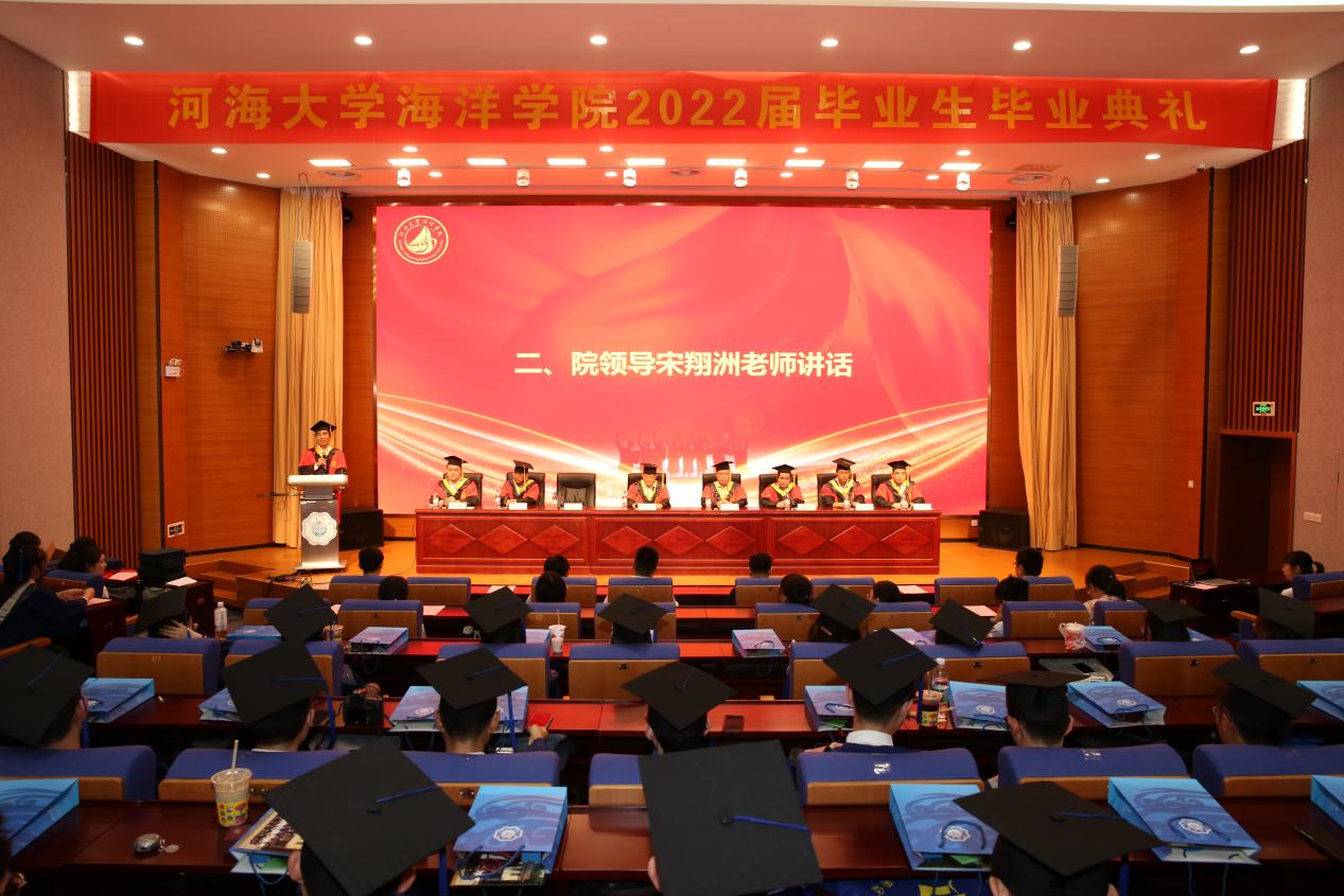 “钟灵毓秀石头城,人才蒸蔚起.....”全场师生起立齐唱91短视频 校歌,典礼在庄严的校歌中拉开帷幕。院长宋翔洲在致辞中向毕业生表示热烈的祝贺和美好的祝愿,他通过分享成长经历与感悟,对毕业生提出几点期望,一是坚守梦想,学会生存,要时刻把海洋强国的国家战略放在至高的工作位置,把个人梦想和志向与新时代中国梦融为一体。二是坚持学习,学会自律,自律与学习是突破内卷的不二法门,更是实现人生进步的必要条件。三是坚守底线,学会变通,时刻保持底线意识,并勉励全体毕业生脚踏实地、不惧内卷,勇做新时代弄潮儿!