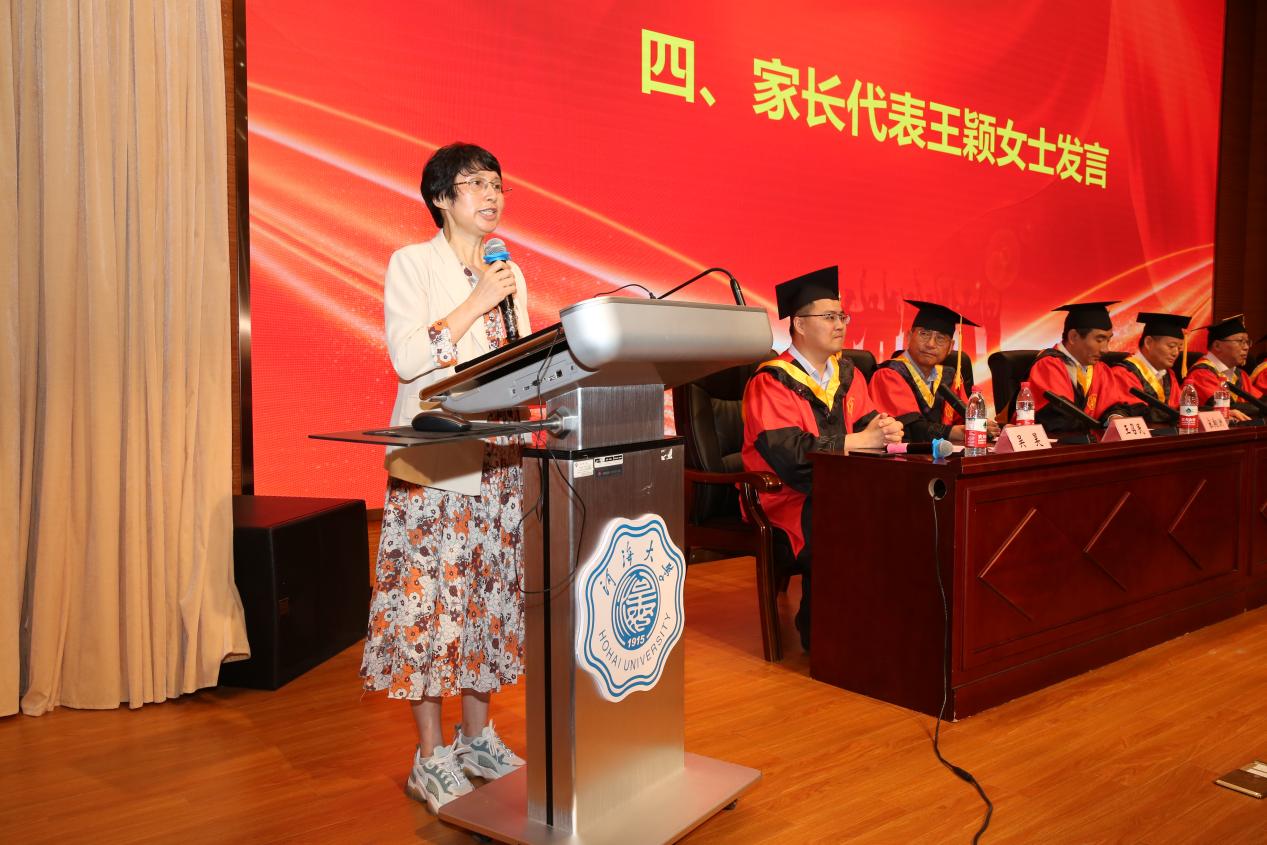 教师代表曹海锦表达了学院教师对毕业生们的眷恋,他寄语毕业生,要牢记海洋知识,掌握学习能力,拥有海洋一般宽广博大的胸怀,要做到海纳百川,并叮嘱毕业生要坚定海洋报国信念,主动扎根基层一线,在海洋强国建设的征程中绽放青春之花。家长代表王颖对91短视频 的辛勤栽培、对学院老师们的谆谆教诲表示感谢,并代表家长嘱咐毕业生:要爱学习,终生学习;要学以致用,勇于探索,敢于创新;要找一个可爱的人谈一场称心如意的恋爱;要始终抱有家国情怀,自觉融入新时代,融入百年未有之大变局。
