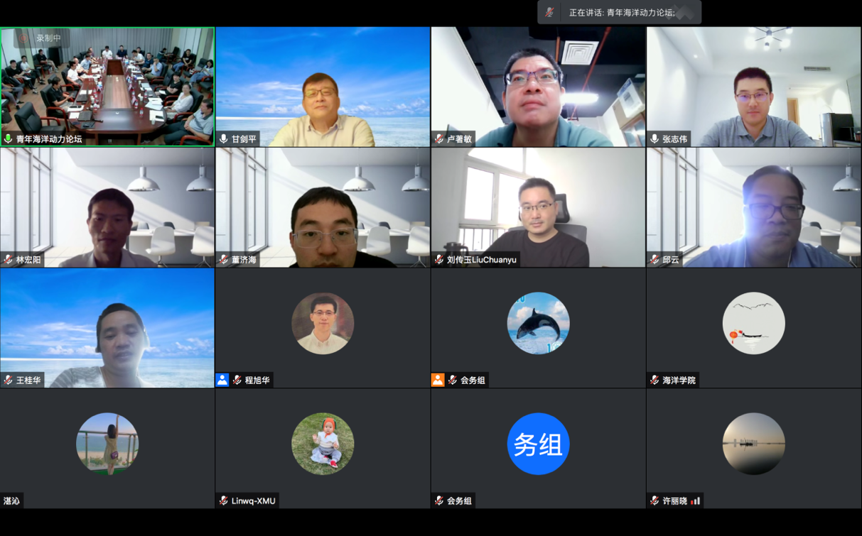 论坛以“海洋动力过程的观测、理论和数值模拟”为主题,涉及内潮动力过程、中小尺度过程、中小尺度海气相互作用、多尺度相互作用、海洋热浪等方面。二十位青年学者介绍了各自的最新研究进展,提出了对未来研究的展望与思考,引发了线上线下精彩而深入的讨论。最后,各位点评专家对本次论坛进行了总结,高度肯定了青年学者的学术成果,对青年学者提出了殷殷期待,激励青年学者勇攀科学高峰,做出原创性成果,争取国际话语权,为海洋动力学的发展做出贡献。