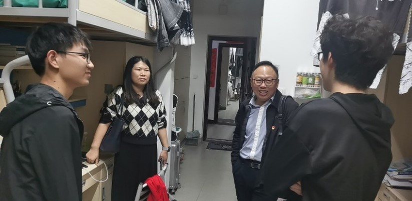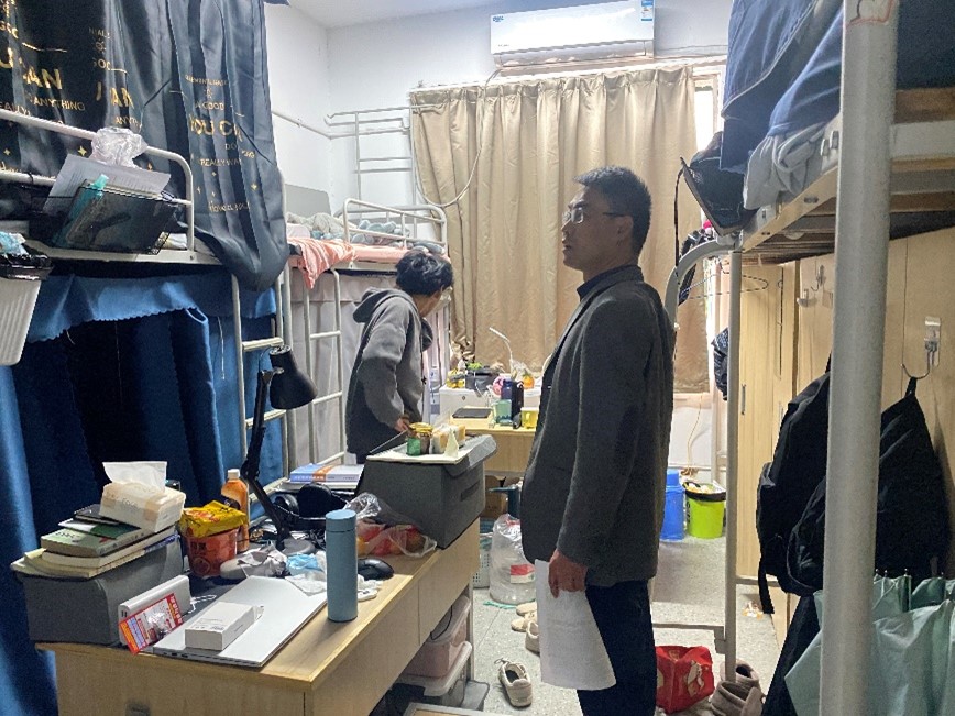 近日,为深入落实“一线规则”,学院党政领导班子深入两校区全体本科生宿舍楼,进一步宣传党的二十大精神,掌握学生生活学习状态与思想动态,帮助同学们在寒冬守好思想防线和安全防线。