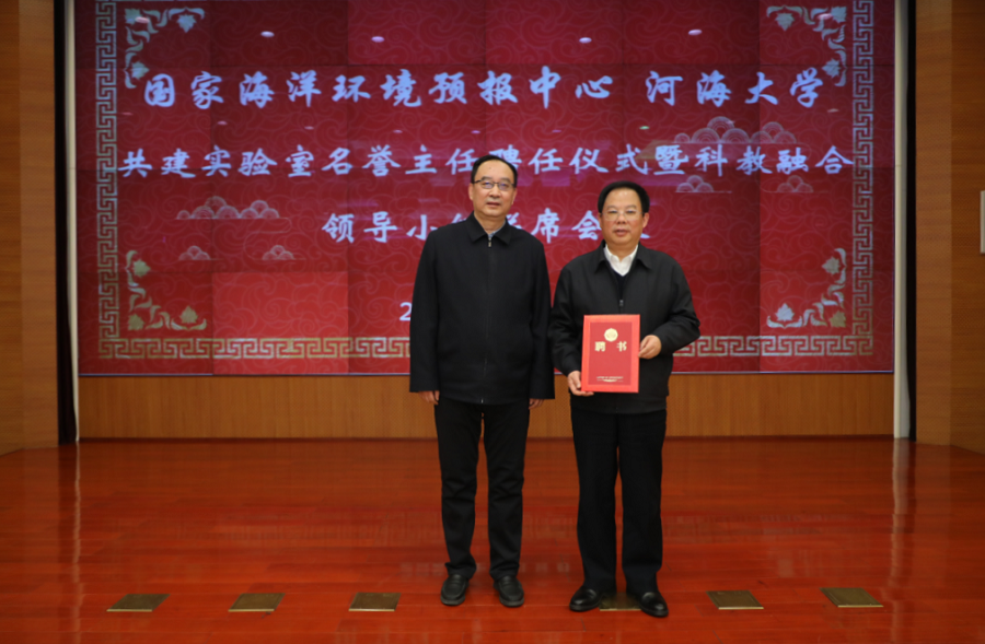 徐辉校长受聘自然资源部海洋灾害预报技术重点实验室名誉主任,于福江主任为其颁发了证书,这是继《国家海洋环境预报中心—91短视频 人员互聘实施细则》签署后,双方落实科教融合共建共识,推进实质性合作的又一重大契机,希望双方加强合作,积极推进海洋预报产学研链条更好发展。