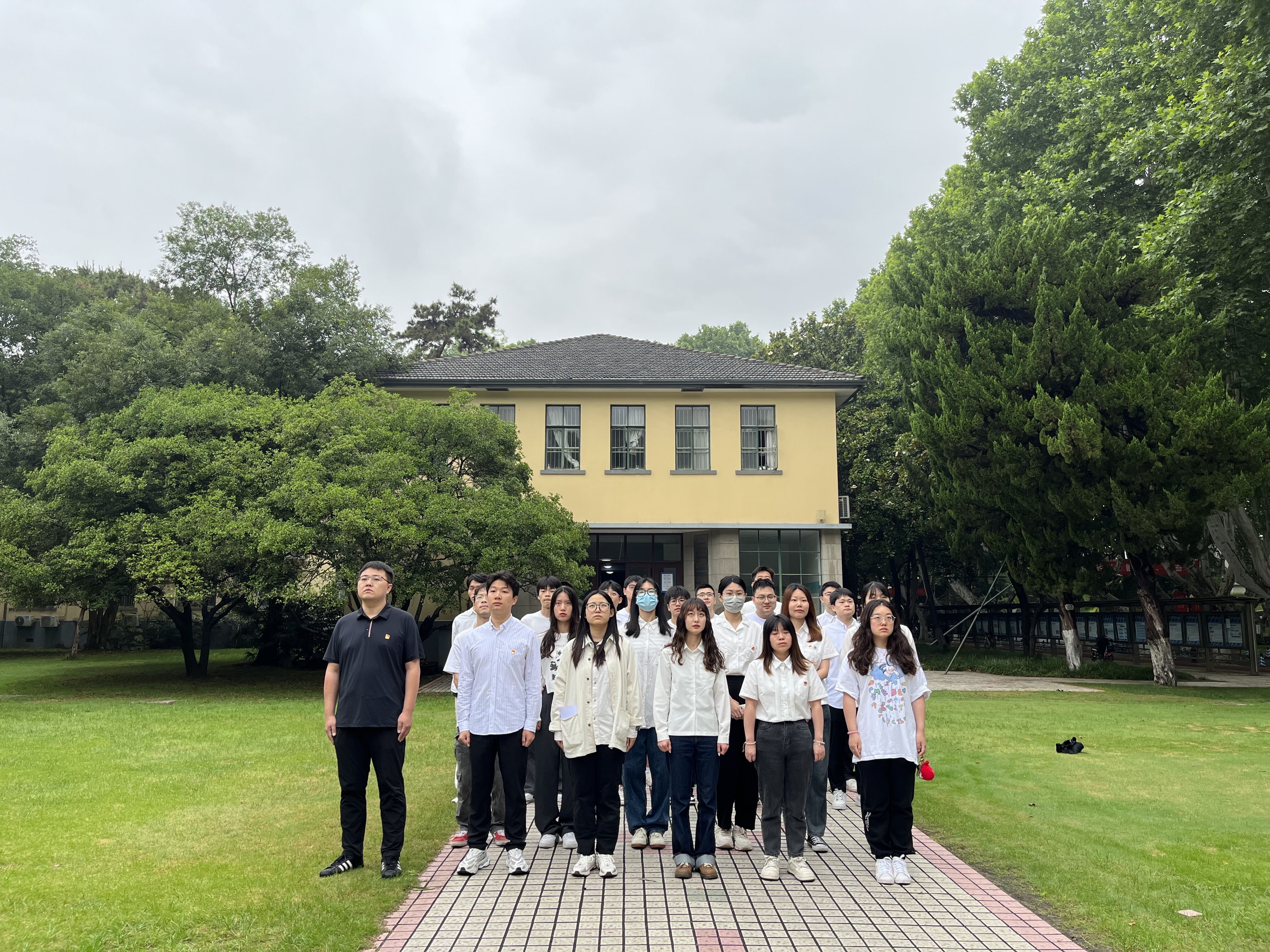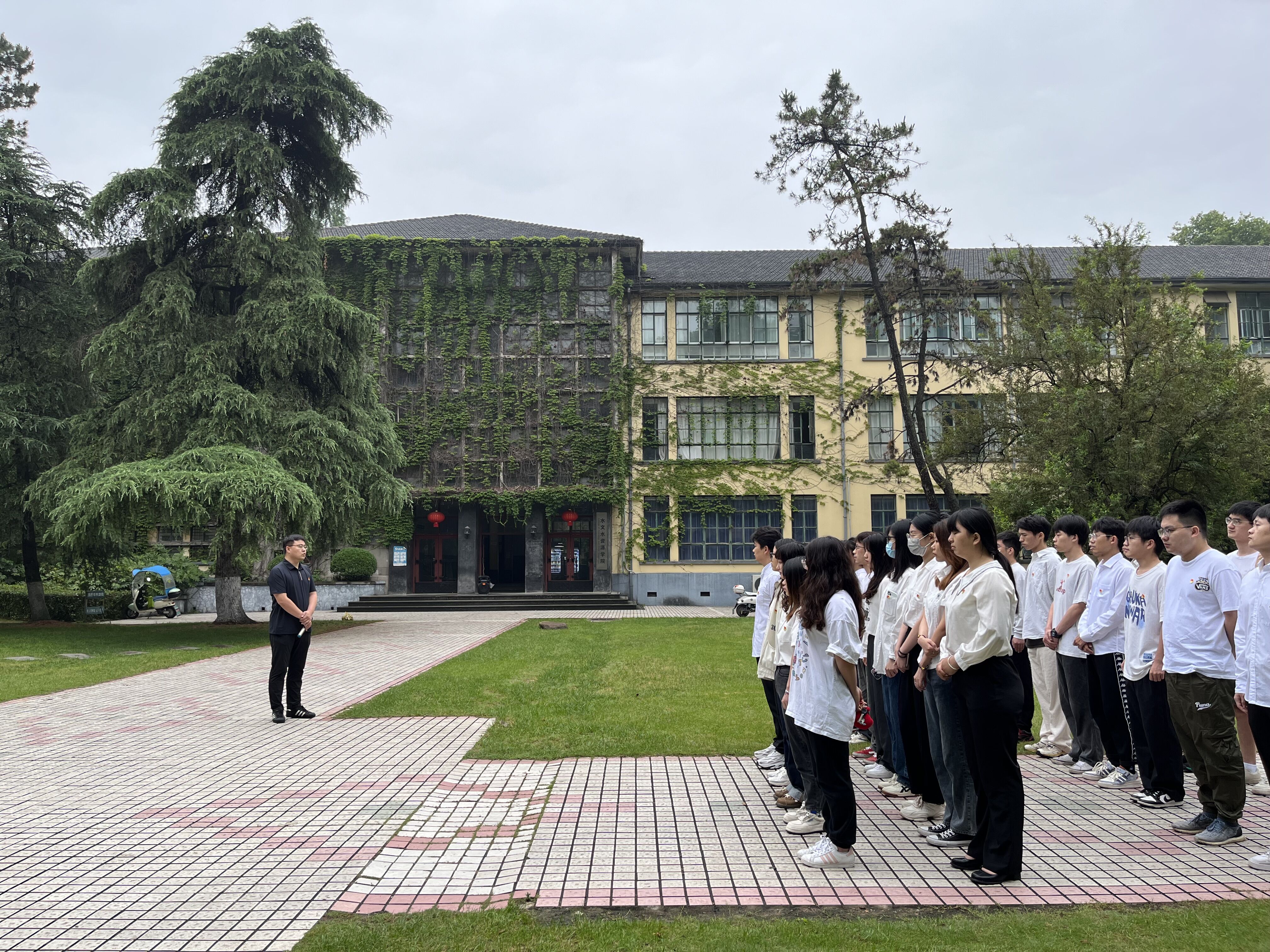2023年6月6日清晨,91短视频 2023届毕业生党员升旗在西康路校区工程馆前举行,91短视频 党委副书记吴昊老师及2023届毕业班全体党员参加了本次升旗仪式。