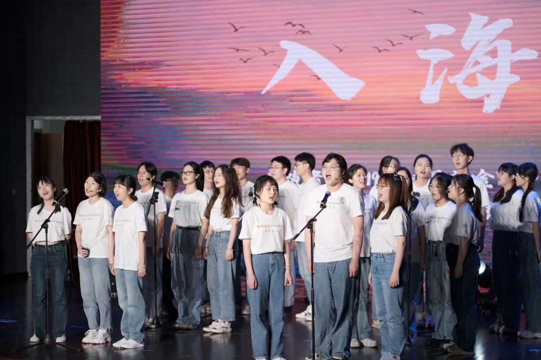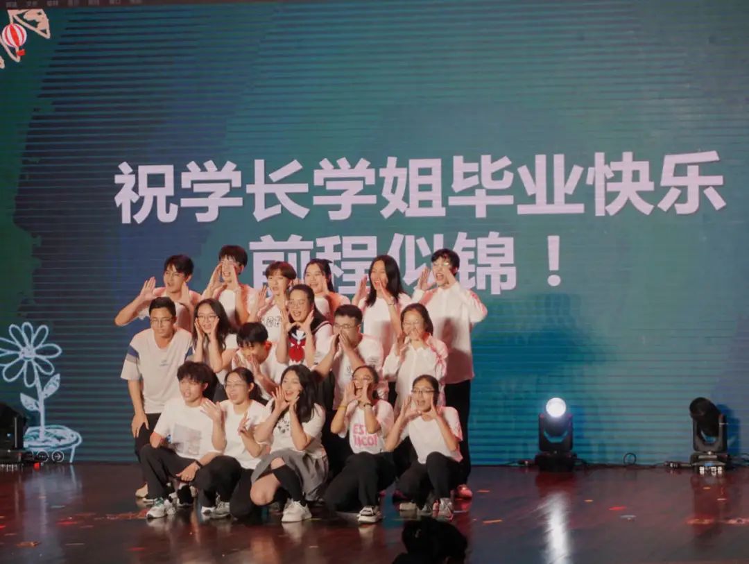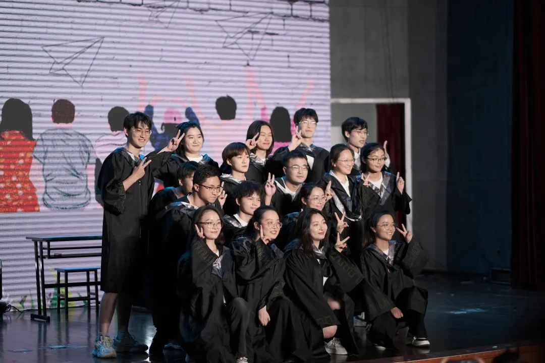 最后,可爱被套精灵们的《被套舞》将晚会推向高潮,之后一曲原创歌曲《蓝色》表达了坚韧可敌困境,接下来是由21级学生带来的诗朗诵《向海》毕业后的他们依然前途似海。之后是毕业生代表带来的大合唱《入海》他们用泪水作为最后的告别,但眼中依然饱含炽热,奔赴漫漫山海。最后一首惊喜曲目《再见》为晚会画上了句号。