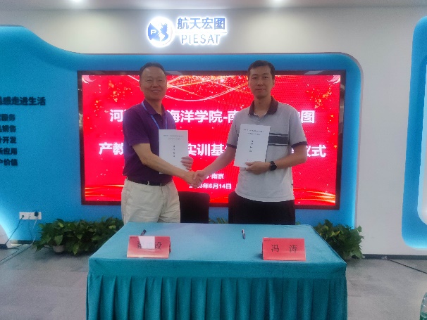 在座谈会上,双方就产学研合作、人才培养、实践就业等方面进行了深入交流。总经理翟建设详细介绍了航天宏图信息技术有限公司的历史沿革、组织结构、主要业务板块、发展情况和人才需求情况,期望未来有更多优秀毕业生加入。相关技术人员介绍了公司在气象海洋、无人机、大气火情、生态环境等业务上的应用,开拓了学生对职业领域的视野。海洋技术系副系主任沈浙奇介绍了学院的基本情况、学生培养及就业情况等。为深化校企间产学研合作,会上双方签署了产教融合实习实训基地合作协议并揭牌,为实现双方供需对接、合作共赢奠定了良好基础。