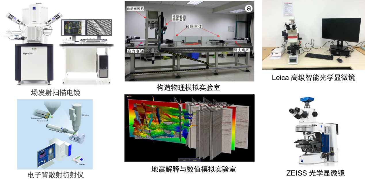 该方向依托海洋科学实验中心,设有国际超微化石档案中心(ThANKS;全球11个、中国唯一)、构造物理模拟实验室、海底地震数据解释与建模实验室、高分辨率偏光显微镜实验室、场发射扫描电镜实验室、电子背散射衍射实验室、微纳结构与岩心分析实验室、成岩—成藏实验室、古环境数据分析实验室、岩矿实验室、化学处理实验室、地质样品库实验室以及高性能计算机服务器机群室等教学科研设施。