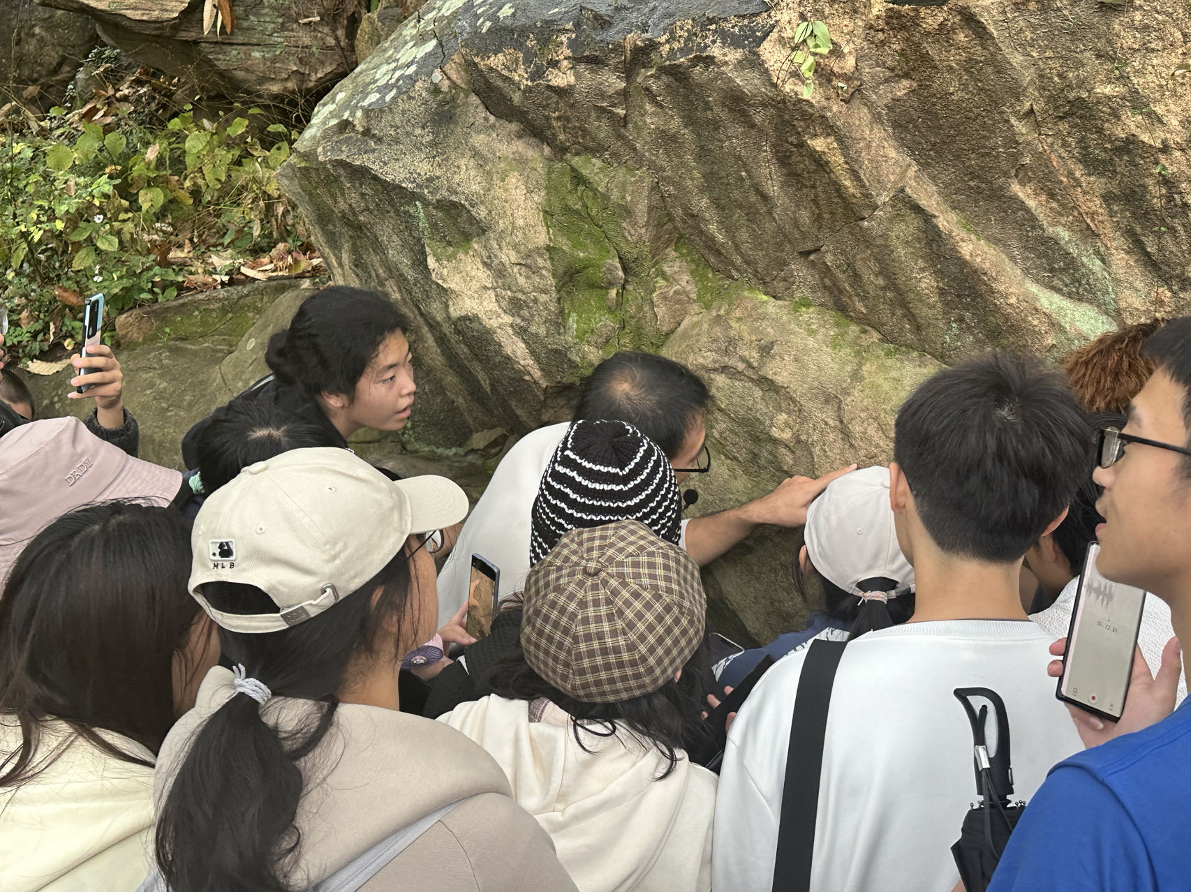 在花果山野外实习中,老师们为同学们讲解了花果山岩石的组成部分,以及山上各种怪石的形成原因。同学们不仅体验了爬到山顶的成就感,还在半山腰处发现了海蚀现象,这让他们对地质地貌有了更深入的理解。