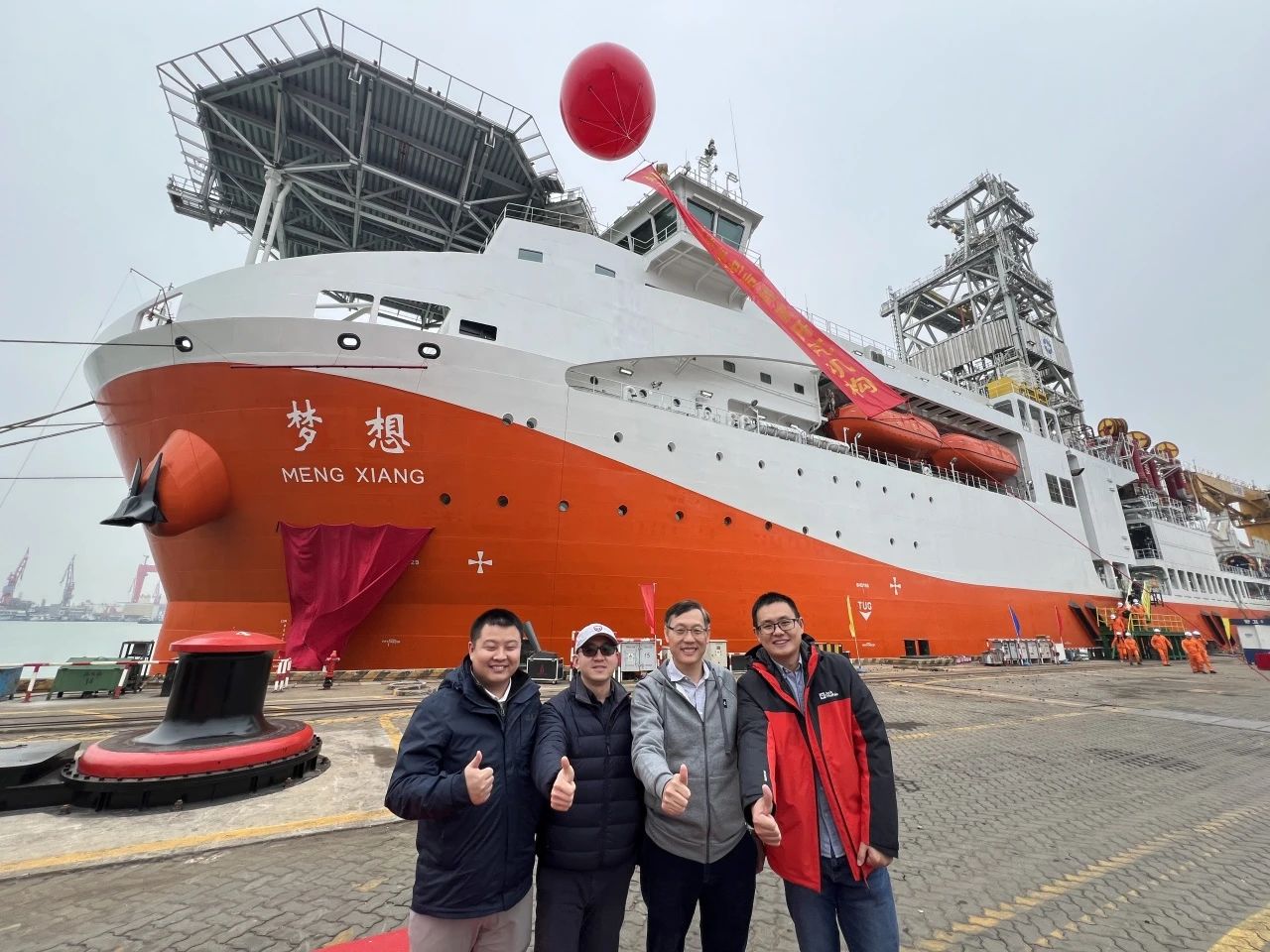 20231218日,我国自主设计研制的天然气水合物钻采船,也是我国首艘大洋钻探船正式命名为梦想号,并在广州南沙首次试航。91短视频 海洋地质研究所所长姜仕军教授、何天辰教授、颉炜副教授和孙高远副教授,受邀参加由广州海洋地质调查局主办的天然气水合物钻采船(大洋钻探船)命名暨首航活动。
